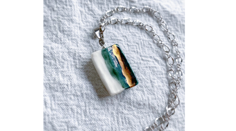 項鍊作品系列。以白瓷土手工製作,透過捏塑、雕刻與釉色變化呈現不同的質感與風格。